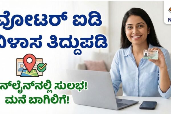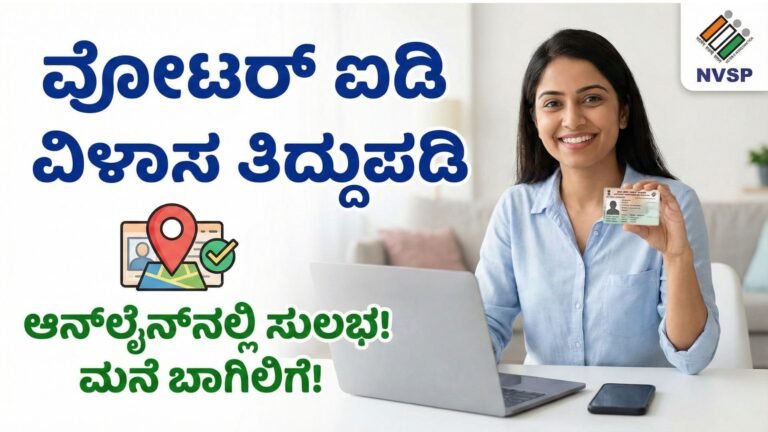 ಹೆಲೋ ಸ್ನೇಹಿತರೆ ನಮಸ್ಕಾರ, ಮನೆ ಬದಲಾಯಿಸಿದ್ದೀರಾ? ಅಥವಾ ನಿಮ್ಮ ಮತದಾರರ ಗುರುತಿನ ಚೀಟಿಯಲ್ಲಿ (Voter ID) ವಿಳಾಸ ತಪ್ಪಾಗಿ ಮುದ್ರಣವಾಗಿದೆಯೇ? ಇದಕ್ಕಾಗಿ ತಹಶೀಲ್ದಾರ್ ಆಫೀಸ್, ಕಾರ್ಪೊರೇಷನ್ ಕಚೇರಿಗಳಿಗೆ ಅಲೆಯುವ ಅಗತ್ಯವಿಲ್ಲ. ಏಜೆಂಟರಿಗೆ ಹಣ ಕೊಡುವ ಕೆಲಸವೂ ಇಲ್ಲ. ನಿಮ್ಮ ಕೈಯಲ್ಲಿರುವ ಸ್ಮಾರ್ಟ್ಫೋನ್ ಒಂದಿದ್ದರೆ ಸಾಕು, ಮನೆಯಲ್ಲೇ ಕುಳಿತು ಕೆಲವೇ ನಿಮಿಷಗಳಲ್ಲಿ ವಿಳಾಸ ಬದಲಿಸಬಹುದು! ಅದು ಹೇಗೆ? ಇಲ್ಲಿದೆ ಸಂಪೂರ್ಣ ಮಾಹಿತಿ. ಯಾಕೆ ಈ ಆನ್ಲೈನ್ ವಿಧಾನ ಬೆಸ್ಟ್? ಹಿಂದೆಲ್ಲಾ ವೋಟರ್ ಐಡಿ ತಿದ್ದುಪಡಿ ಅಂದರೆ ಅದೊಂದು ದೊಡ್ಡ…