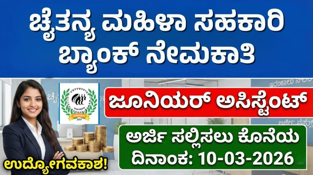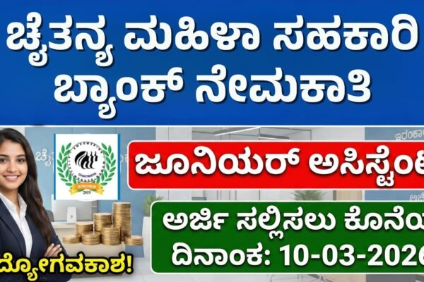 ಹಲೋ ಸ್ನೇಹಿತರೇ ನಮಸ್ಕಾರ, ವಿಜಯಪುರದ ಪ್ರತಿಷ್ಠಿತ Chaitanya Mahila Cooperative Bank Limited ವತಿಯಿಂದ ಜೂನಿಯರ್ ಅಸಿಸ್ಟೆಂಟ್ ಹುದ್ದೆಗಳ ನೇಮಕಾತಿಗಾಗಿ ಅಧಿಕೃತ ಅಧಿಸೂಚನೆ ಪ್ರಕಟಿಸಲಾಗಿದೆ. ಬ್ಯಾಂಕಿಂಗ್ ಕ್ಷೇತ್ರದಲ್ಲಿ ವೃತ್ತಿಜೀವನ ಆರಂಭಿಸಲು ಬಯಸುವ ಅಭ್ಯರ್ಥಿಗಳಿಗೆ ಇದು ಉತ್ತಮ ಅವಕಾಶ. ಹುದ್ದೆಯ ವಿವರಗಳು: ವಿದ್ಯಾರ್ಹತೆ : ಸಂಬಳ: ವಯೋಮಿತಿ: ವಯೋಮಿತಿ ಸಡಿಲಿಕೆ: ಆಯ್ಕೆ ಪ್ರಕ್ರಿಯೆ: ಅರ್ಜಿ ಸಲ್ಲಿಸುವ ವಿಧಾನ: ವಿಳಾಸ:Chaitanya Mahila Cooperative Bank Limited,ಮೀನಾಕ್ಷಿ ಚೌಕ್, ಮಿರ್ಡೆ ಗಲ್ಲಿ,ವಿಜಯಪುರ – 586101, ಕರ್ನಾಟಕ ಪ್ರಮುಖ ದಿನಾಂಕಗಳು: ಪ್ರಮುಖ ಲಿಂಕ್ಗಳು:…