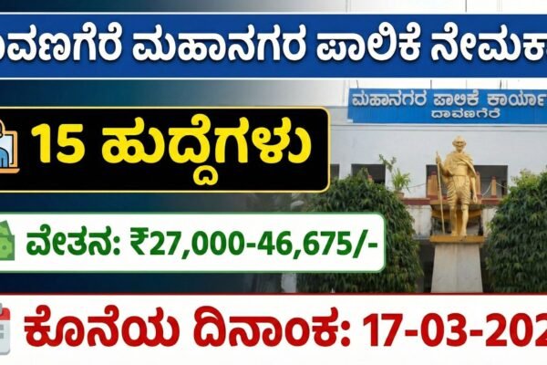 ಹಲೋ ಸ್ನೇಹಿತರೇ ನಮಸ್ಕಾರ, ಸರ್ಕಾರಿ ಕೆಲಸದ ಕನಸು ಕಾಣುತ್ತಿರುವವರಿಗಿದು ಸಕತ್ ಚಾನ್ಸ್. ಅದೂ ಸ್ವಂತ ಊರಿನಲ್ಲೇ ಕೆಲಸ ಮಾಡುವ ಅವಕಾಶ ಸಿಕ್ಕರೆ ಹೇಗಿರುತ್ತದೆ? ಈಗ ಆ ಅವಕಾಶ ಬಂದಿದೆ. ದಾವಣಗೆರೆ ಮಹಾನಗರ ಪಾಲಿಕೆ 2026ನೇ ಸಾಲಿನ ನೇಮಕಾತಿ ಅಧಿಸೂಚನೆಯನ್ನು ಪ್ರಕಟಿಸಿದೆ. ಕೇವಲ 15 ಹುದ್ದೆಗಳು ಇದ್ದರೂ, ಸಿಗುವ ಸಂಬಳ ಮತ್ತು ಸೌಲಭ್ಯಗಳು ತುಂಬಾ ಆಕರ್ಷಕ. ಆಸಕ್ತಿ ಇರುವವರು ಈ ಮಾಹಿತಿಯನ್ನು ಕೊನೆವರೆಗೂ ಓದಿ – ಅರ್ಜಿ ಹೇಗೆ ಸಲ್ಲಿಸಬೇಕು, ಯಾರು ಅರ್ಹರು, ಪ್ರಮುಖ ದಿನಾಂಕಗಳು ಎಲ್ಲವೂ ಇಲ್ಲಿದೆ….