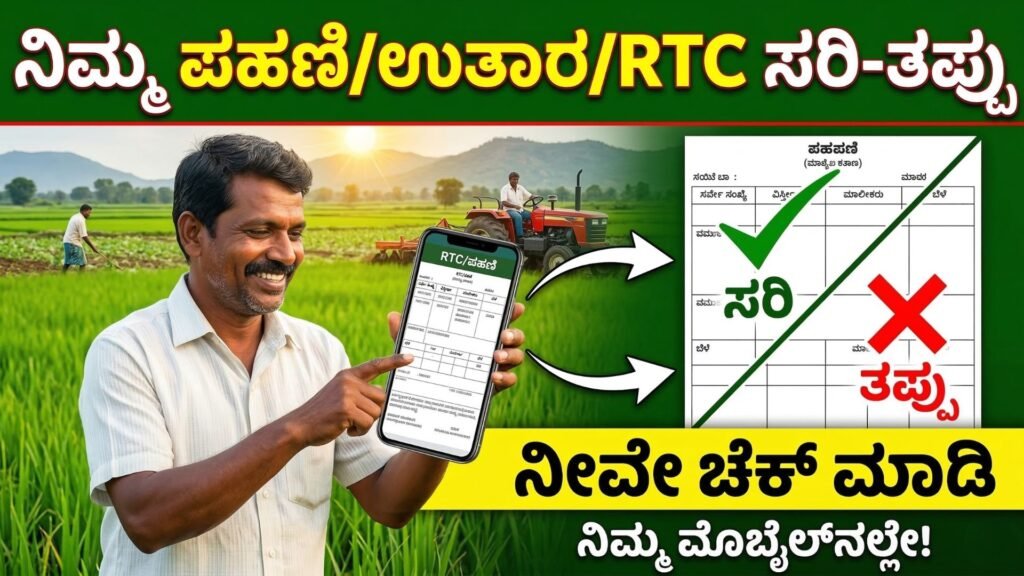 ಹಲೋ ಸ್ನೇಹಿತರೇ ನಮಸ್ಕಾರ, ಜಮೀನು ಇರುವುದು ಕೇವಲ ಆಸ್ತಿಯಲ್ಲ, ಅದು ನಮ್ಮ ಅಸ್ತಿತ್ವ. ಆದರೆ, ನಿಮ್ಮ ಕೈಯಲ್ಲಿರುವ ಪಹಣಿ (RTC/ಉತಾರ) ದಾಖಲೆಯಲ್ಲಿ ಒಂದು ಸಣ್ಣ ಅಕ್ಷರ ತಪ್ಪಾಗಿದ್ದರೂ ಅಥವಾ ಸರ್ವೇ ನಂಬರ್ ವ್ಯತ್ಯಾಸವಾಗಿದ್ದರೂ ಭವಿಷ್ಯದಲ್ಲಿ ಕೋರ್ಟ್-ಕಚೇರಿ ಅಲೆಯುವಂತಾಗಬಹುದು. ನಮ್ಮ ರಾಜ್ಯದ ಎಷ್ಟೋ ರೈತರಿಗೆ ತಮ್ಮ ಪಹಣಿಯಲ್ಲಿ ಏನಿದೆ ಮತ್ತು ಅದನ್ನು ಹೇಗೆ ಓದಬೇಕು ಎಂಬುದೇ ತಿಳಿದಿರುವುದಿಲ್ಲ. ಚಿಂತಿಸಬೇಡಿ, ನಿಮ್ಮ ಪಹಣಿ ಸರಿಯಾಗಿದೆಯೇ ಅಥವಾ ಇಲ್ಲವೇ ಎಂದು ನೀವೇ ಕೇವಲ 2 ನಿಮಿಷದಲ್ಲಿ ತಿಳಿದುಕೊಳ್ಳಬಹುದು. ಅದು ಹೇಗೆ? ಈ…