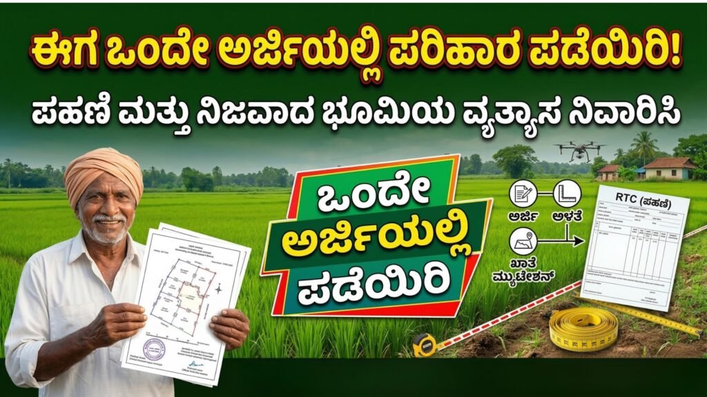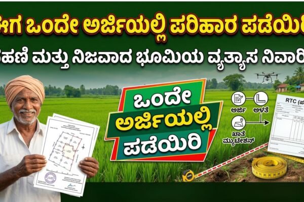 ರೈತ ಬಾಂಧವರೇ ಗಮನಿಸಿಸರ್ಕಾರಿ ದಾಖಲೆ ಅಥವಾ ಪಹಣಿಯಲ್ಲಿ (RTC) 5 ಎಕರೆ ಅಂತ ಇರುತ್ತದೆ, ಆದರೆ ನೀವು ಸಾಗುವಳಿ ಮಾಡುತ್ತಿರುವುದು ಕೇವಲ 4 ಎಕರೆ ಮಾತ್ರ ಇರಬಹುದು. ಉಳಿದ 1 ಎಕರೆ ಎಲ್ಲಿ ಹೋಯಿತು? ನೆರೆಹೊರೆಯವರು ಒತ್ತುವರಿ ಮಾಡಿದ್ದಾರಾ ಅಥವಾ ಅಳತೆಯಲ್ಲಿ ತಪ್ಪಾಗಿದೆಯೇ? ಇಂತಹ ಗೊಂದಲಗಳಿಗೆ ಈಗ ಸುಲಭ ಪರಿಹಾರ ಸಿಕ್ಕಿದೆ. ಕೇವಲ ಒಂದೇ ಒಂದು ಅರ್ಜಿ ಹಾಕುವ ಮೂಲಕ ನಿಮ್ಮ ಪಹಣಿಯಲ್ಲಿರುವ ಪೂರ್ತಿ ಜಮೀನನ್ನು ನೀವು ಕಾನೂನುಬದ್ಧವಾಗಿ ಮರಳಿ ಪಡೆಯಬಹುದು. ಅದು ಹೇಗೆ? ಈ ಕೆಳಗಿನ…