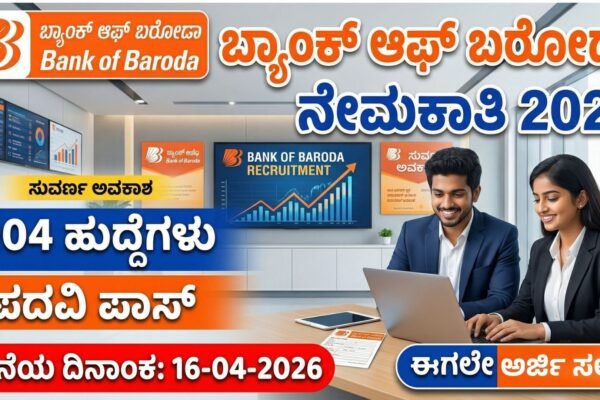 ಹಲೋ ಸ್ನೇಹಿತರೇ ನಮಸ್ಕಾರ, ಬ್ಯಾಂಕಿಂಗ್ ಕ್ಷೇತ್ರದಲ್ಲಿ ವೃತ್ತಿಜೀವನ ರೂಪಿಸಿಕೊಳ್ಳಬೇಕು ಎಂಬ ಕನಸು ನಿಮಗಿದೆಯೇ? ಹಾಗಿದ್ದರೆ ನಿಮಗೊಂದು ಸಿಹಿ ಸುದ್ದಿ. ಪ್ರತಿಷ್ಠಿತ ಬ್ಯಾಂಕ್ ಆಫ್ ಬರೋಡಾ (BOB) ತನ್ನಲ್ಲಿ ಖಾಲಿ ಇರುವ ವಿವಿಧ ಹುದ್ದೆಗಳ ಭರ್ತಿಗೆ ಅಧಿಕೃತ ಅಧಿಸೂಚನೆ ಹೊರಡಿಸಿದೆ. ಆಸಕ್ತ ಅಭ್ಯರ್ಥಿಗಳಿಗೆ ಒಂದು ಸುವರ್ಣಾವಕಾಶವಾಗಿದೆ ಹುದ್ದೆಗಳ ವಿವರ: ಶೈಕ್ಷಣಿಕ ಅರ್ಹತೆ: ವಯೋಮಿತಿ : ವಯೋಮಿತಿ ಸಡಿಲಿಕೆ: ಅರ್ಜಿ ಶುಲ್ಕ: ಆಯ್ಕೆ ಪ್ರಕ್ರಿಯೆ: ಅರ್ಜಿ ಸಲ್ಲಿಸುವುದು ಹೇಗೆ? ಪ್ರಮುಖ ದಿನಾಂಕಗಳು: ಪ್ರಮುಖ ಲಿಂಕ್ಗಳು: ವಾಟ್ಸಾಪ್ ಗ್ರೂಪ್ ಇಲ್ಲಿ ಕ್ಲಿಕ್ ಮಾಡಿ ಇತರೆ ಮಾಹಿತಿಗಾಗಿ…
