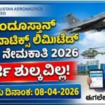 ಹಲೋ ಸ್ನೇಹಿತರೇ ನಮಸ್ಕಾರ,ನೀವು ಎಂಜಿನಿಯರಿಂಗ್ ಪದವೀಧರರೇ? ಪ್ರತಿಷ್ಠಿತ ಹಿಂದೂಸ್ತಾನ್ ಏರೋನಾಟಿಕ್ಸ್ ಲಿಮಿಟೆಡ್ (HAL) ನಲ್ಲಿ ಕೆಲಸ ಮಾಡುವ ಕನಸು ನಿಮಗಿದೆಯೇ? ಹಾಗಿದ್ದರೆ ನಿಮಗೊಂದು ಭರ್ಜರಿ ಸಿಹಿಸುದ್ದಿ. HAL ಇಂಡಿಯಾ 2026ನೇ ಸಾಲಿನ ನೇಮಕಾತಿಗಾಗಿ ಅಧಿಕೃತ ಅಧಿಸೂಚನೆ ಹೊರಡಿಸಿದ್ದು,ಅಸಕ್ತ ಅಭ್ಯರ್ಥಿಗಳಿಗೆ ಒಂದು ಸುವರ್ಣಾವಕಾಶವಾಗಿದ ಉದ್ಯೋಗದ ಸಂಕ್ಷಿಪ್ತ ಮಾಹಿತಿ: ಶೈಕ್ಷಣಿಕ ಅರ್ಹತೆ : ವಯೋಮಿತಿ: ಅರ್ಜಿ ಶುಲ್ಕ: ಸಂಬಳ: ದಿನಕ್ಕೆ ₹10,000/- ವೇತನ ನೀಡಲಾಗುತ್ತದೆ. ಆಯ್ಕೆ ವಿಧಾನ: ಅರ್ಜಿ ಸಲ್ಲಿಸುವುದು ಹೇಗೆ? ಇದು ಆಫ್ಲೈನ್ ಅರ್ಜಿ ಪ್ರಕ್ರಿಯೆಯಾಗಿದ್ದು, ಅಭ್ಯರ್ಥಿಗಳು ಈ ಕೆಳಗಿನ ಹಂತಗಳನ್ನು ಪಾಲಿಸಬೇಕು: ಅರ್ಜಿ ಕಳುಹಿಸಬೇಕಾದ ವಿಳಾಸ:…