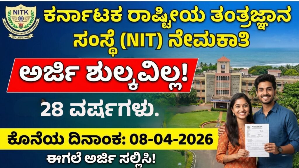 ಹಲೋ ಸ್ನೇಹಿತರೇ ನಮಸ್ಕಾರ,ನೀವು ವಿಜ್ಞಾನ ವಿಭಾಗದಲ್ಲಿ ಸ್ನಾತಕೋತ್ತರ ಪದವಿ (M.Sc) ಮುಗಿಸಿ ಉತ್ತಮ ಕೇಂದ್ರ ಸರ್ಕಾರಿ ಸಂಸ್ಥೆಯಲ್ಲಿ ಕೆಲಸ ಹುಡುಕುತ್ತಿದ್ದೀರಾ? ಹಾಗಿದ್ದರೆ ನಿಮಗೊಂದು ಸುವರ್ಣಾವಕಾಶ. ದಕ್ಷಿಣ ಕನ್ನಡ ಜಿಲ್ಲೆಯ ಪ್ರತಿಷ್ಠಿತ ಸಂಸ್ಥೆಯಾದ ರಾಷ್ಟ್ರೀಯ ತಂತ್ರಜ್ಞಾನ ಸಂಸ್ಥೆ ಕರ್ನಾಟಕ (NITK), ಸುರತ್ಕಲ್ ಇದೀಗ ಜೂನಿಯರ್ ರಿಸರ್ಚ್ ಫೆಲೋ (JRF) ಹುದ್ದೆಗೆ ಅರ್ಜಿ ಆಹ್ವಾನಿಸಿದೆ. ಹುದ್ದೆಯ ಸಂಕ್ಷಿಪ್ತ ಮಾಹಿತಿ: ಶೈಕ್ಷಣಿಕ ಅರ್ಹತೆ: ವೇತನ : ವಯೋಮಿತಿ: ಆಯ್ಕೆ ವಿಧಾನ: ಅಜಿ ಶುಲ್ಕ: ಪ್ರಮುಖ ದಿನಾಂಕಗಳು: ಅರ್ಜಿ ಸಲ್ಲಿಸುವುದು ಹೇಗೆ? ಪ್ರಮುಖ ಲಿಂಕ್ಗಳು: ವಾಟ್ಸಾಪ್…