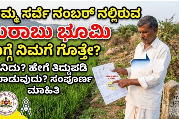 ರೈತ ಬಾಂಧವರೇ ಗಮನಿಸಿ, ನಿಮ್ಮ ಹೆಸರಿನಲ್ಲಿ ಎಷ್ಟೇ ಎಕರೆ ಜಮೀನಿರಲಿ, ಅದರ ಪಹಣಿ (RTC)ಯನ್ನು ಒಮ್ಮೆ ಸೂಕ್ಷ್ಮವಾಗಿ ಗಮನಿಸಿ. ಅಲ್ಲಿ ‘ಖರಾಬು’ (Kharab Land) ಎಂಬ ಕಾಲಂ ಇರುತ್ತದೆ. ಬಹಳಷ್ಟು ರೈತರು ಅಥವಾ ಭೂ ಮಾಲೀಕರು ಇದನ್ನು ಕೇವಲ ‘ಬಂಜರು ಭೂಮಿ’ ಎಂದು ನಿರ್ಲಕ್ಷಿಸುತ್ತಾರೆ. ಆದರೆ, ಈ ಖರಾಬು ಭೂಮಿಯ ಬಗ್ಗೆ ನಿಮಗೆ ಸರಿಯಾದ ಮಾಹಿತಿ ಇಲ್ಲದಿದ್ದರೆ ಮುಂದೆ ಕಾನೂನು ಸಂಕಷ್ಟಕ್ಕೆ ಸಿಲುಕುವ ಸಾಧ್ಯತೆ ಇರುತ್ತದೆ. ಖರಾಬು ಭೂಮಿ ಎಂದರೇನು? ಅದರಲ್ಲಿರುವ ವಿಧಗಳಾವುವು? ನಿಮ್ಮ ಜಮೀನಿನ ಬೆಲೆ…