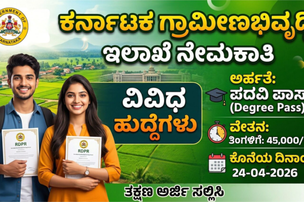 ನಮಸ್ಕಾರ ಸ್ನೇಹಿತರೇ, ಕರ್ನಾಟಕ ಸರ್ಕಾರದಲ್ಲಿ ವೃತ್ತಿಜೀವನವನ್ನು ಆರಂಭಿಸಲು ಬಯಸುವ ಉದ್ಯೋಗಾಕಾಂಕ್ಷಿಗಳಿಗೆ ಇಲ್ಲಿದೆ ಒಂದು ಭರ್ಜರಿ ಅವಕಾಶ! ಕರ್ನಾಟಕ ಗ್ರಾಮೀಣಾಭಿವೃದ್ಧಿ ಮತ್ತು ಪಂಚಾಯತ್ ರಾಜ್ ಇಲಾಖೆಯು (RDPR) ರಾಜ್ಯದ ವಿವಿಧ ಜಿಲ್ಲೆಗಳಲ್ಲಿ ಖಾಲಿ ಇರುವ ಓಂಬುಡ್ಸ್ಮನ್ (Ombudsman) ಹುದ್ದೆಗಳನ್ನು ಭರ್ತಿ ಮಾಡಲು ಅಧಿಕೃತ ನೇಮಕಾತಿ ಅಧಿಸೂಚನೆಯನ್ನು ಹೊರಡಿಸಿದೆ. ಹುದ್ದೆಯ ಸಂಕ್ಷಿಪ್ತ ವಿವರಗಳು: ವಿದ್ಯಾರ್ಹತೆ: ಮಾಸಿಕ ವೇತನ : ವಯೋಮಿತಿ: ಅರ್ಜಿ ಶುಲ್ಕ: ಆಯ್ಕೆ ವಿಧಾನ: ಸಂದರ್ಶನ ಅರ್ಜಿ ಸಲ್ಲಿಸುವ ವಿಧಾನ: ಗ್ರಾಮೀಣಾಭಿವೃದ್ಧಿ ಮತ್ತು ಪಂಚಾಯತ್ ರಾಜ್ ಇಲಾಖೆ, 5…