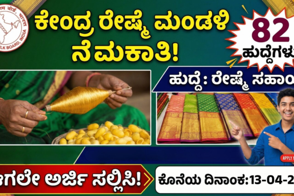 ನಮಸ್ಕಾರ ಸ್ನೇಹಿತರೇ, ನೀವು ಪದವಿ ಮುಗಿಸಿ ಕೇಂದ್ರ ಸರ್ಕಾರದಲ್ಲಿ ಉತ್ತಮ ಉದ್ಯೋಗ ಹುಡುಕುತ್ತಿದ್ದೀರಾ? ಹಾಗಿದ್ದರೆ ನಿಮಗಾಗಿ ಇಲ್ಲಿದೆ ಒಂದು ಸುವರ್ಣ ಅವಕಾಶ! ಕೇಂದ್ರ ರೇಷ್ಮೆ ಮಂಡಳಿಯು (Central Silk Board – CSB) ಖಾಲಿ ಇರುವ ‘ರೇಷ್ಮೆ ಸಹಾಯಕ’ (Silk Assistant) ಹುದ್ದೆಗಳನ್ನು ಭರ್ತಿ ಮಾಡಲು ಅಧಿಕೃತ ನೇಮಕಾತಿ ಅಧಿಸೂಚನೆಯನ್ನು ಹೊರಡಿಸಿದೆ. CSB ಹುದ್ದೆಯ ವಿವರಗಳು: ಶೈಕ್ಷಣಿಕ ಅರ್ಹತೆ: ವಯೋಮಿತಿ ಮತ್ತು ಸಡಿಲಿಕೆ ಆಯ್ಕೆ ವಿಧಾನ: ಮಾಸಿಕ ವೇತನ: ಅರ್ಜಿ ಶುಲ್ಕ: ಅರ್ಜಿ ಸಲ್ಲಿಸುವುದು ಹೇಗೆ? ಪ್ರಮುಖ…