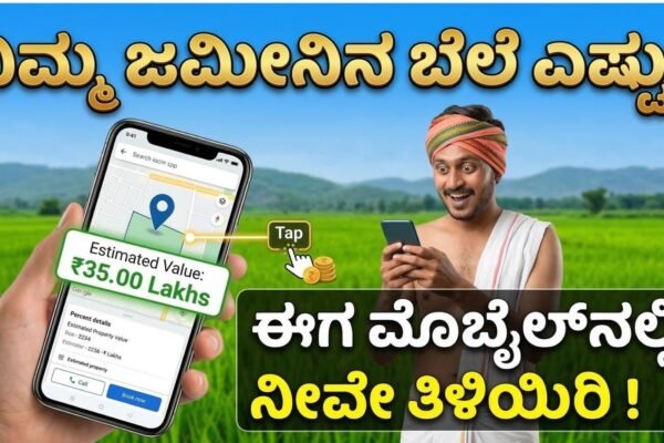 ಹಲೋ ಸ್ನೇಹಿತರೇ ನಮಸ್ಕಾರ, ನಿಮ್ಮ ಹತ್ತಿರ ಜಮೀನು ಇದೆಯಾ? ಹಾಗಾದರೆ ಅದರ ಇಂದಿನ ಮಾರುಕಟ್ಟೆ ಮೌಲ್ಯ ಅಥವಾ ಸರ್ಕಾರಿ ಬೆಲೆ (Guidance Value) ಎಷ್ಟು ಎಂಬ ಕುತೂಹಲ ನಿಮಗೂ ಇರಬಹುದು. ಜಮೀನು ಮಾರಾಟ ಮಾಡುವಾಗ ಅಥವಾ ಹೊಸದಾಗಿ ಖರೀದಿಸುವಾಗ ಅದರ ನಿಖರ ಬೆಲೆ ತಿಳಿಯುವುದು ಬಹಳ ಮುಖ್ಯ. ಈಗ ನೀವು ಆಫೀಸ್ಗಳಿಗೆ ಅಲೆಯುವ ಅಗತ್ಯವಿಲ್ಲ! ನಿಮ್ಮ ಕೈಯಲ್ಲಿರುವ ಮೊಬೈಲ್ ಬಳಸಿ ಕೇವಲ ಎರಡೇ ನಿಮಿಷದಲ್ಲಿ ನಿಮ್ಮ ಜಮೀನಿನ ಬೆಲೆಯನ್ನು ನೀವೇ ತಿಳಿದುಕೊಳ್ಳಬಹುದು. ಅದು ಹೇಗೆ? ಇಲ್ಲಿದೆ ಸಂಪೂರ್ಣ ಮಾಹಿತಿ….