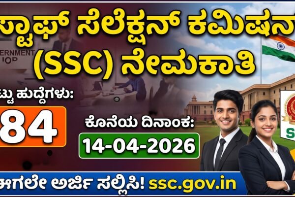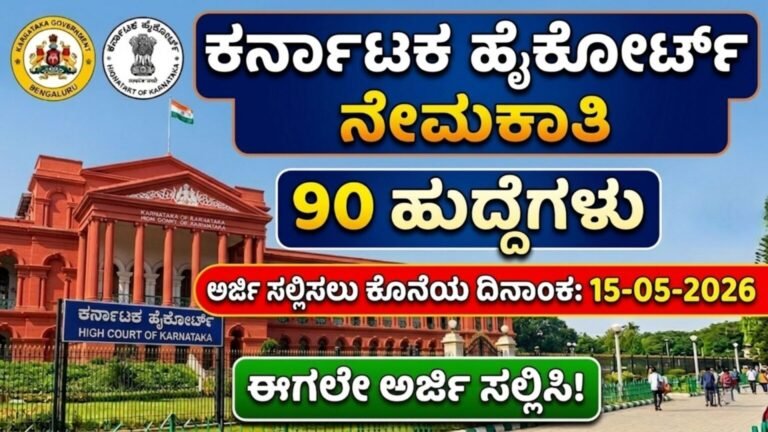 ಹಲೋ ಸ್ನೇಹಿತರೇ ನಮಸ್ಕಾರ, ನೀವು ಕಾನೂನು ಪದವಿ (LLB) ಮುಗಿಸಿ ಗೌರವಾನ್ವಿತ ಸರ್ಕಾರಿ ಉದ್ಯೋಗದ ಹುಡುಕಾಟದಲ್ಲಿದ್ದೀರಾ? ಹಾಗಿದ್ದರೆ ನಿಮಗೊಂದು ಸುವರ್ಣ ಅವಕಾಶ.ಕರ್ನಾಟಕ ಹೈಕೋರ್ಟ್ 2026ನೇ ಸಾಲಿನ ಬೃಹತ್ ನೇಮಕಾತಿ ಅಧಿಸೂಚನೆಯನ್ನು ಹೊರಡಿಸಿದೆ. ವೃತ್ತಿಜೀವನದಲ್ಲಿ ದೊಡ್ಡ ಮಟ್ಟದ ಗುರಿ ಹೊಂದಿರುವವರಿಗೆ ಇದು ಸೂಕ್ತ ವೇದಿಕೆಯಾಗಿದೆ. ಹುದ್ದೆಯ ವಿವರಗಳು: ಶೈಕ್ಷಣಿಕ ಅರ್ಹತೆ: ಸಂಬಳ: ವಯೋಮಿತಿ: ವಯೋಮಿತಿ ಸಡಿಲಿಕೆ: ಅರ್ಜಿ ಶುಲ್ಕ: ಪೂರ್ವಭಾವಿ ಪರೀಕ್ಷಾ ಶುಲ್ಕ: ಮುಖ್ಯ ಪರೀಕ್ಷಾ ಶುಲ್ಕ: ಆಯ್ಕೆ ಪ್ರಕ್ರಿಯೆ: ಅರ್ಜಿ ಸಲ್ಲಿಸುವುದು ಹೇಗೆ? ಪ್ರಮುಖ ದಿನಾಂಕಗಳು: ಪ್ರಮುಖ ಲಿಂಕ್ಗಳು: ವಾಟ್ಸಾಪ್…