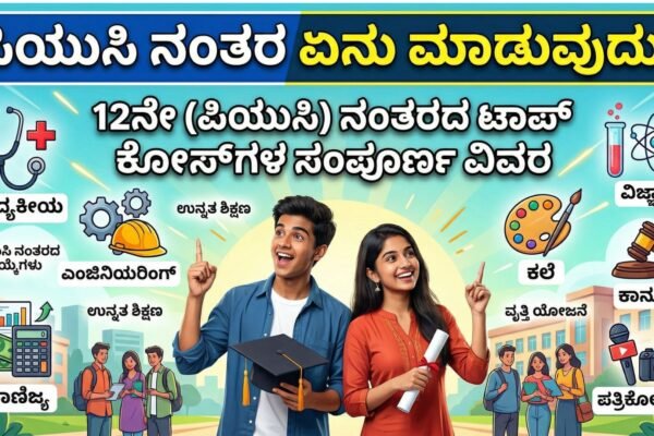 ಹೆಲೋ ಸ್ನೇಹಿತರೆ ನಮಸ್ಕಾರ,ಪಿಯುಸಿ ಮುಗಿಸುವುದು ಪ್ರತಿಯೊಬ್ಬ ವಿದ್ಯಾರ್ಥಿಯ ಜೀವನದಲ್ಲಿ ಅತ್ಯಂತ ಮಹತ್ವದ ಘಟ್ಟ. ಇದು ಶಾಲಾ ಶಿಕ್ಷಣದಿಂದ ಉನ್ನತ ಶಿಕ್ಷಣ ಮತ್ತು ವೃತ್ತಿಪರ ಜೀವನಕ್ಕೆ ಕಾಲಿಡುವ ಪ್ರವೇಶ ದ್ವಾರ. ಪಿಯುಸಿ ಫಲಿತಾಂಶ ಬಂದ ತಕ್ಷಣ ವಿದ್ಯಾರ್ಥಿಗಳಲ್ಲಿ ಮತ್ತು ಪೋಷಕರಲ್ಲಿ ಕಾಡುವ ಮೊದಲ ಪ್ರಶ್ನೆ “ಮುಂದೇನು?”. ಇಂದಿನ ಸ್ಪರ್ಧಾತ್ಮಕ ಜಗತ್ತಿನಲ್ಲಿ ನೂರಾರು ಕೋರ್ಸ್ಗಳು ಲಭ್ಯವಿವೆ. ಸರಿಯಾದ ಕೋರ್ಸ್ ಆಯ್ಕೆ ಮಾಡುವುದು ನಿಮ್ಮ ಭವಿಷ್ಯದ ವೃತ್ತಿಜೀವನವನ್ನು ನಿರ್ಧರಿಸುತ್ತದೆ. ನೀವು ಪಿಯುಸಿಯಲ್ಲಿ ವಿಜ್ಞಾನ (Science), ವಾಣಿಜ್ಯ (Commerce) ಅಥವಾ ಕಲಾ (Arts)…