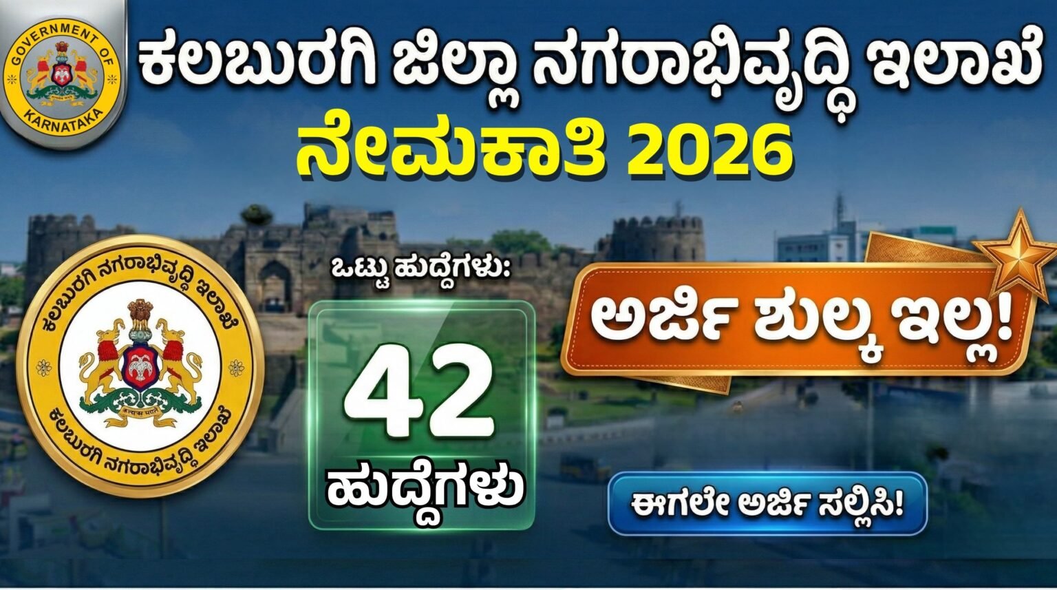 ಜಿಲ್ಲಾ ನಗರಾಭಿವೃದ್ಧಿ ಇಲಾಖೆ ನೇಮಕಾತಿ 2026 | DUDC Kalaburagi Recruitment