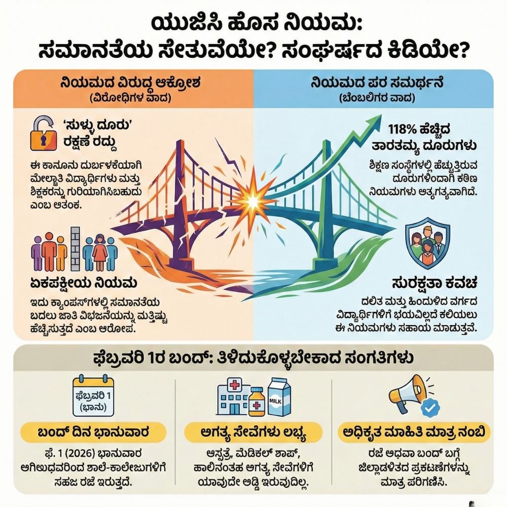 ಒಟ್ಟಿನಲ್ಲಿ, ಕ್ಯಾಂಪಸ್ನಲ್ಲಿ ‘ಸಮಾನತೆ’ ತರುವ ಉದ್ದೇಶದಿಂದ ಜಾರಿಯಾದ ನಿಯಮಗಳು ಈಗ ದೇಶಾದ್ಯಂತ ಹೊಸ ‘ಸಂಘರ್ಷ’ಕ್ಕೆ ನಾಂದಿ ಹಾಡಿರುವುದು ವಿಪರ್ಯಾಸ.