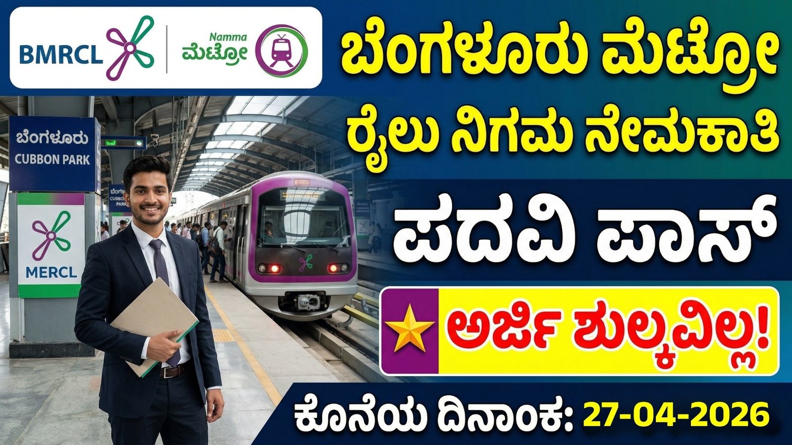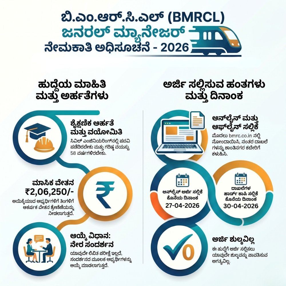 ಬೆಂಗಳೂರು ಮೆಟ್ರೋ ರೈಲು ನಿಗಮ  ನೇಮಕಾತಿ | BMRCL Recruitment 2026