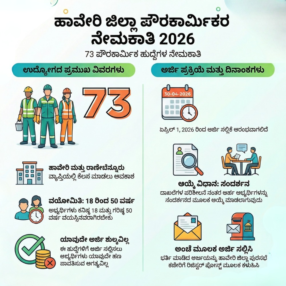 - ಅರ್ಜಿ ಸಲ್ಲಿಸಲು ಕೊನೆಯ ದಿನಾಂಕ: 30-04-2026