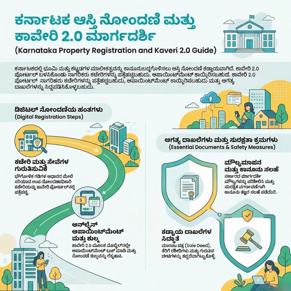 - ಅಧಿಕೃತ ಸೀಲು: ಆನ್ಲೈನ್ನಲ್ಲಿ ಸಿಗುವ ಪ್ರತಿ ಕೇವಲ ಮಾಹಿತಿಗಾಗಿ ಇರುತ್ತದೆ. ನೀವು ಕಾನೂನುಬದ್ಧವಾಗಿ ಬಳಸಬೇಕಾದರೆ ‘ಡಿಜಿಟಲ್ ಸಹಿ’ ಇರುವ ಪ್ರತಿಯನ್ನು ಪಡೆಯಲು ಸಣ್ಣ ಮೊತ್ತದ ಶುಲ್ಕ ಪಾವತಿಸಬೇಕಾಗಬಹುದು.