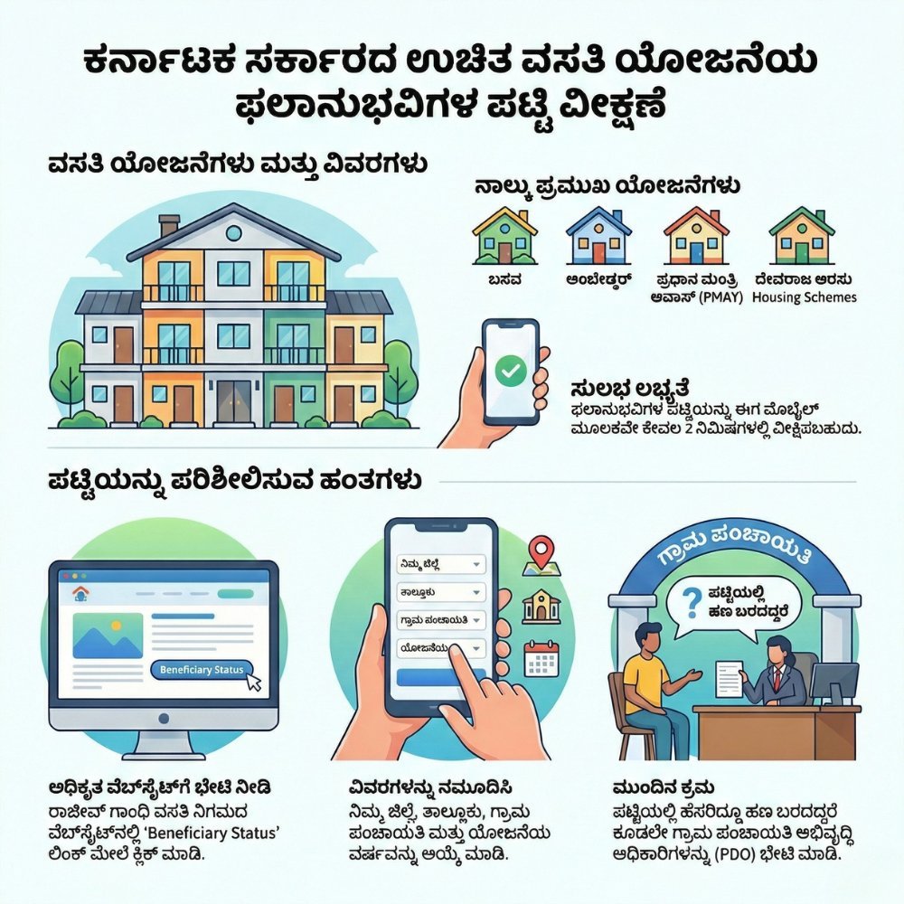 ಆದರೆ, ಹಲವರಿಗೆ ತಮ್ಮ ಊರಿನಲ್ಲಿ ಯಾರಿಗೆ ಮನೆ ಬಂದಿದೆ? ಲಿಸ್ಟ್‌ನಲ್ಲಿ ತಮ್ಮ ಹೆಸರು ಇದೆಯೇ ಅಥವಾ ಇಲ್ಲವೇ ಎಂಬುದನ್ನು ಚೆಕ್ ಮಾಡುವುದು ಹೇಗೆ ಎಂಬುದು ತಿಳಿದಿರುವುದಿಲ್ಲ. ಈಗ ನೀವು ಯಾರನ್ನೂ ಕೇಳುವ ಅಗತ್ಯವಿಲ್ಲ, ನಿಮ್ಮ ಮೊಬೈಲ್‌ನಲ್ಲೇ ಕೇವಲ 2 ನಿಮಿಷದಲ್ಲಿ ಸಂಪೂರ್ಣ ಪಟ್ಟಿಯನ್ನು ನೋಡಬಹುದು!