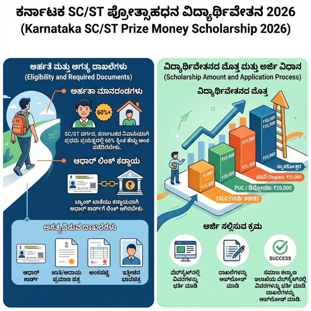 - ವರ್ಗ: ವಿದ್ಯಾರ್ಥಿಯು ಕಡ್ಡಾಯವಾಗಿ SC ಅಥವಾ ST ವರ್ಗಕ್ಕೆ ಸೇರಿರಬೇಕು.