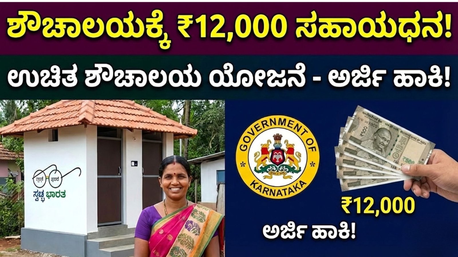 ನಮಸ್ಕಾರ ಸ್ನೇಹಿತರೇ, ನಿಮ್ಮ ಮನೆಯಲ್ಲಿ ಇನ್ನು ಶೌಚಾಲಯವಿಲ್ಲವೇ? ಅಥವಾ ಹಳೆಯ ಶೌಚಾಲಯವನ್ನು ಸರಿಪಡಿಸಿಕೊಳ್ಳಬೇಕೇ? ಹಾಗಿದ್ದರೆ ನಿಮಗೊಂದು ಭರ್ಜರಿ ಸಿಹಿಸುದ್ದಿ! ಕೇಂದ್ರ ಸರ್ಕಾರದ ‘ಸ್ವಚ್ಛ ಭಾರತ್ ಮಿಷನ್’ ಅಡಿಯಲ್ಲಿ ಶೌಚಾಲಯ ನಿರ್ಮಾಣಕ್ಕಾಗಿ ಪ್ರತಿ ಕುಟುಂಬಕ್ಕೆ 12,000 ರೂಪಾಯಿ ಧನಸಹಾಯ ನೀಡಲಾಗುತ್ತಿದೆ.