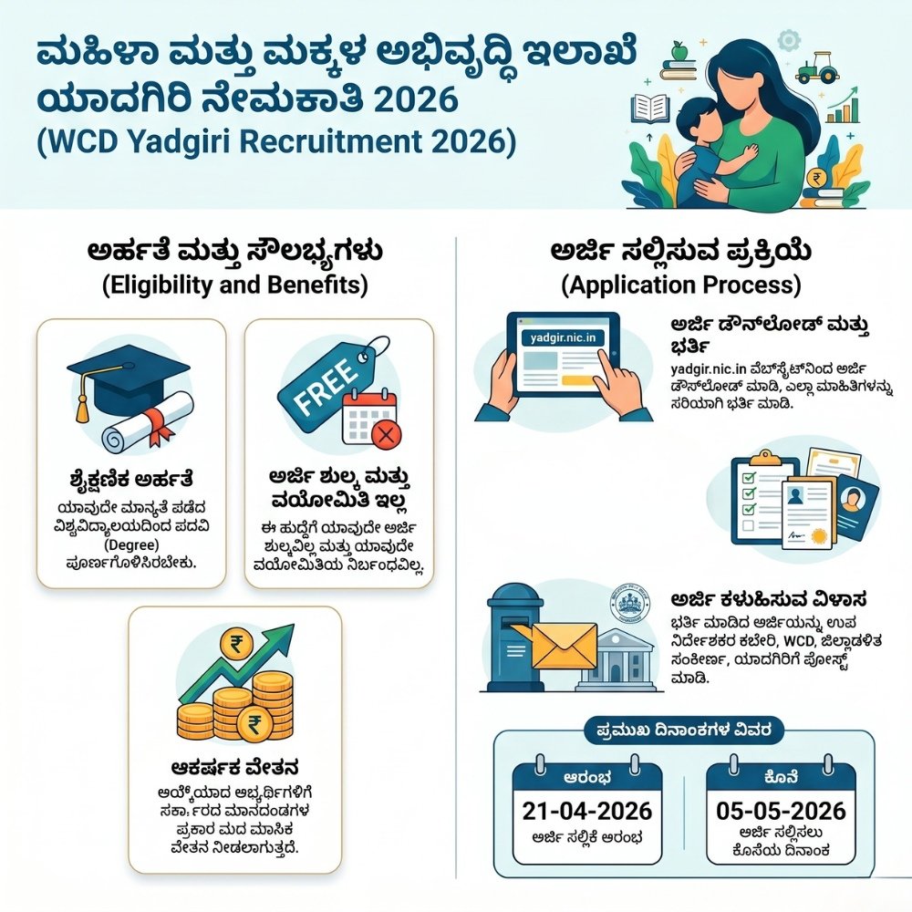 ಮಹಿಳಾ-ಮಕ್ಕಳ ಅಭಿವೃದ್ಧಿ ಇಲಾಖೆ ನೇಮಕಾತಿ | WCD Yadgiri Recruitment 2026